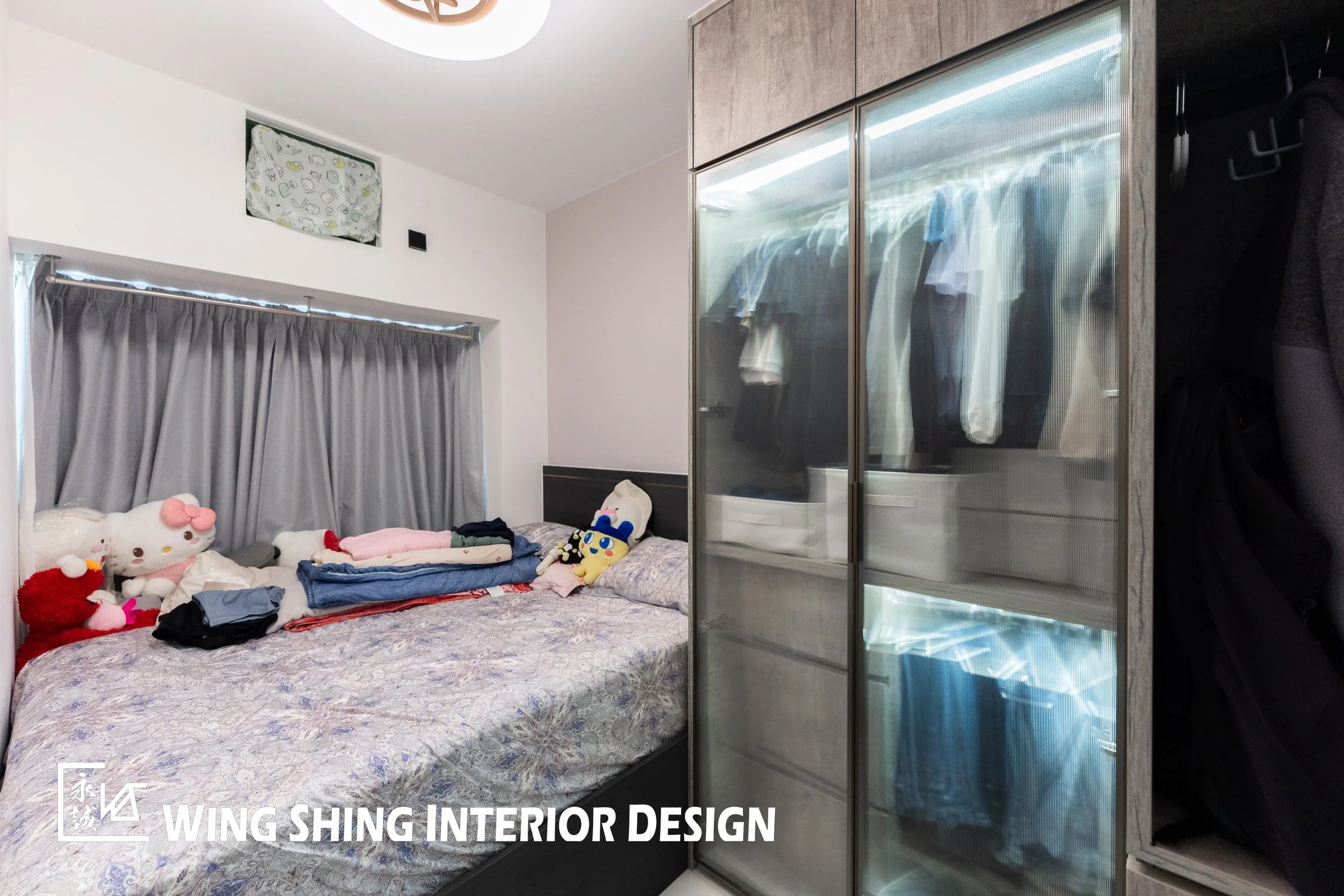 該睡房未做固定傢俬,作為小朋友的專屬玩具房,高架床不擠占小朋友活動空間,避免磕碰,又能充當為臨時客房。