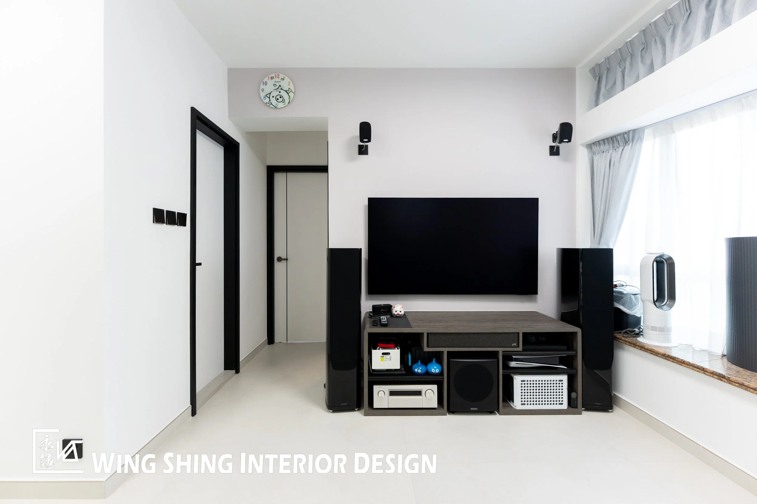 型格的現代風,以中性色(白色、黑色)為空間底色,營造簡潔、富有現代感的氛圍。