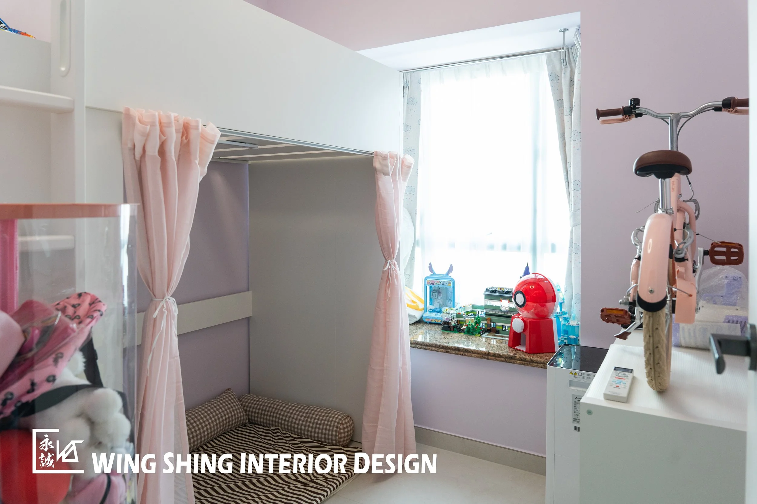粉紫墻面,讓整個房間都透著軟乎乎的童趣感。